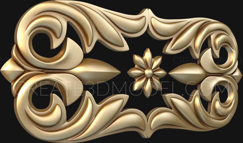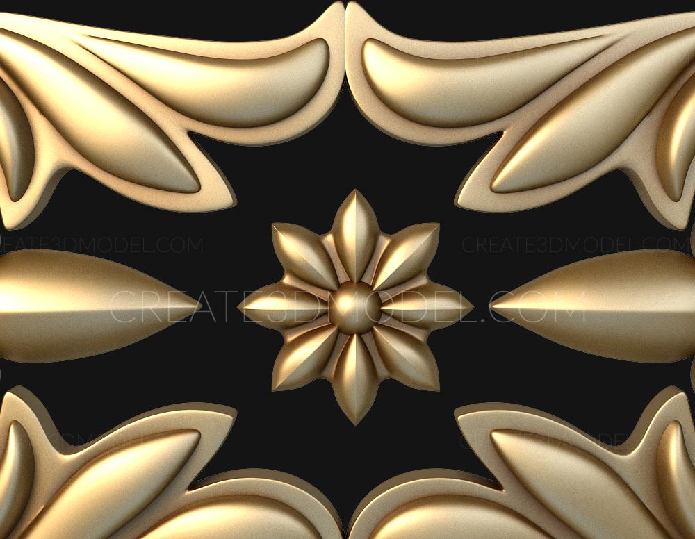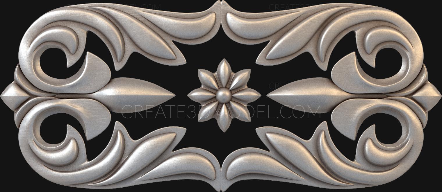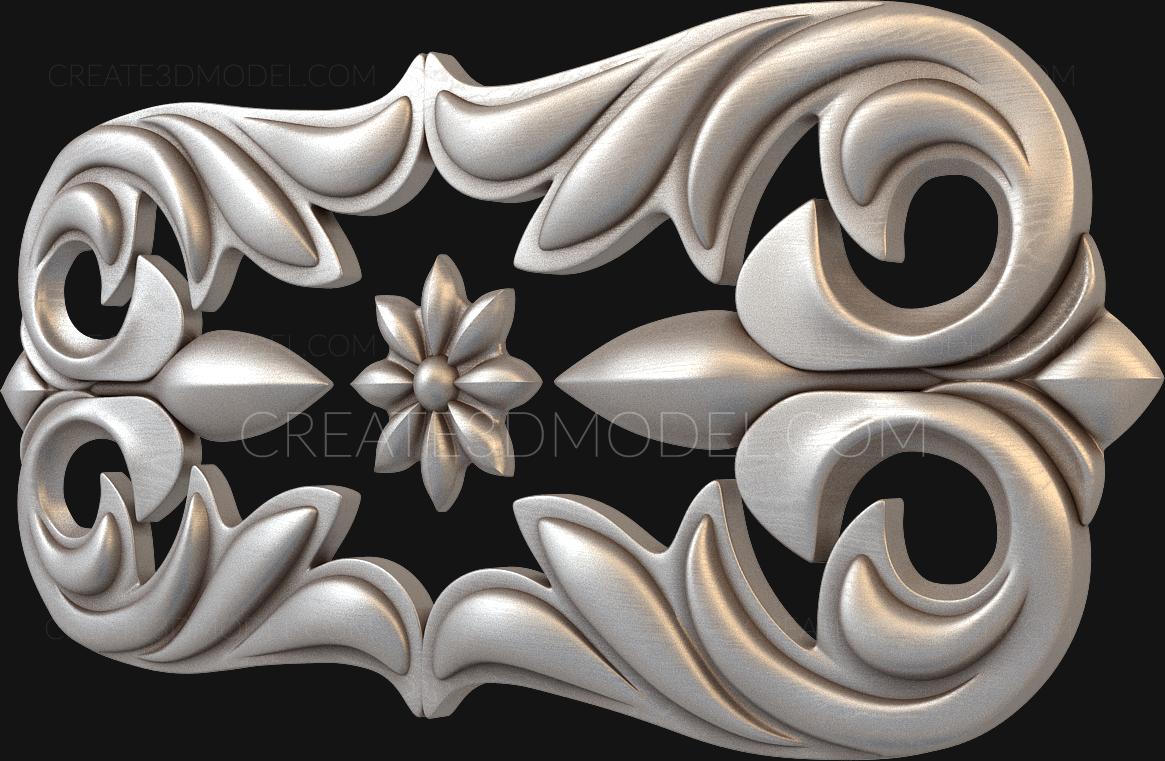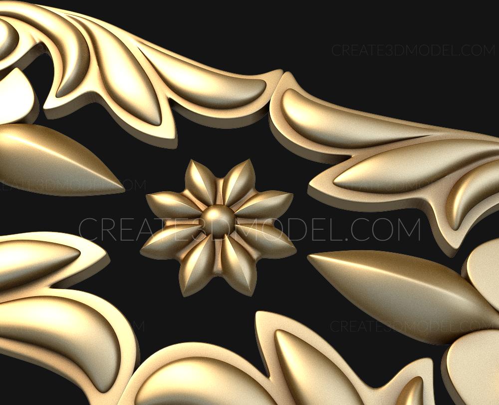 Ornamental overlay with symmetrical floral center and twisted leaves