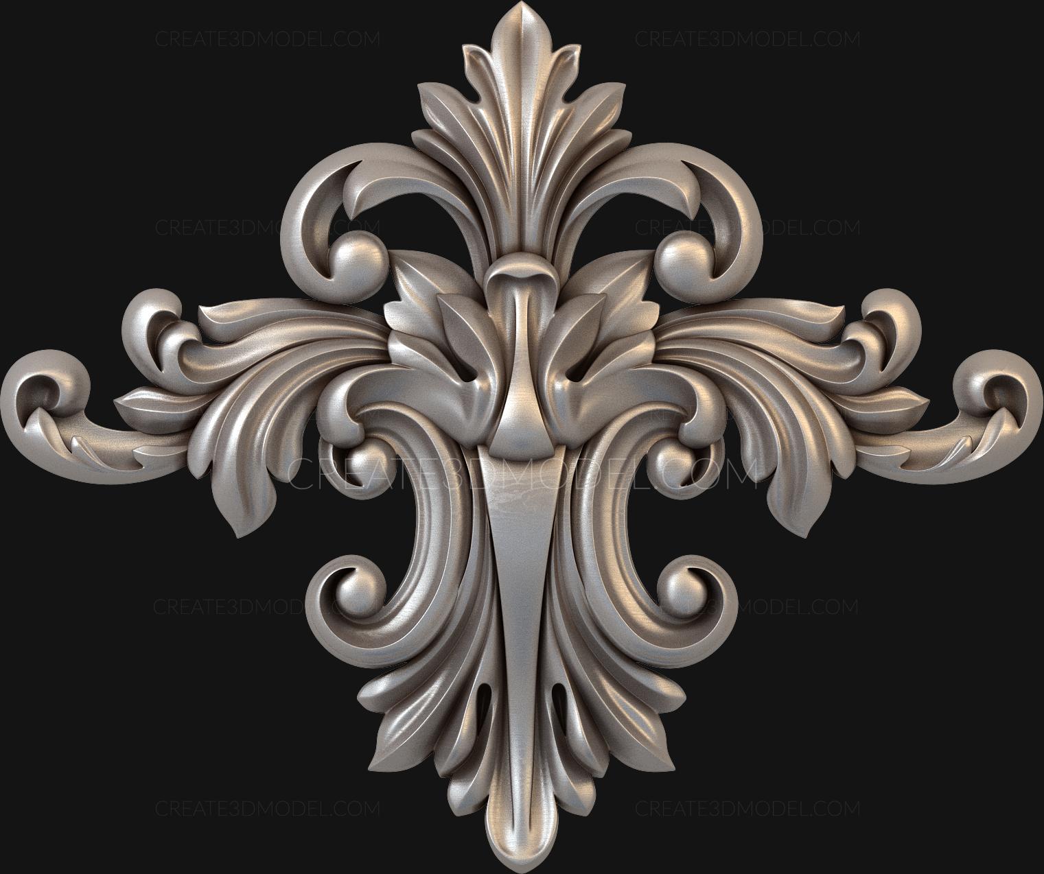 Central carved element with symmetrical acanthus and elongated base