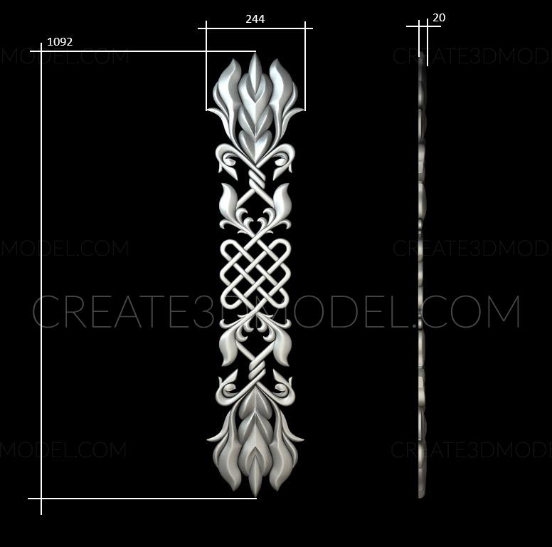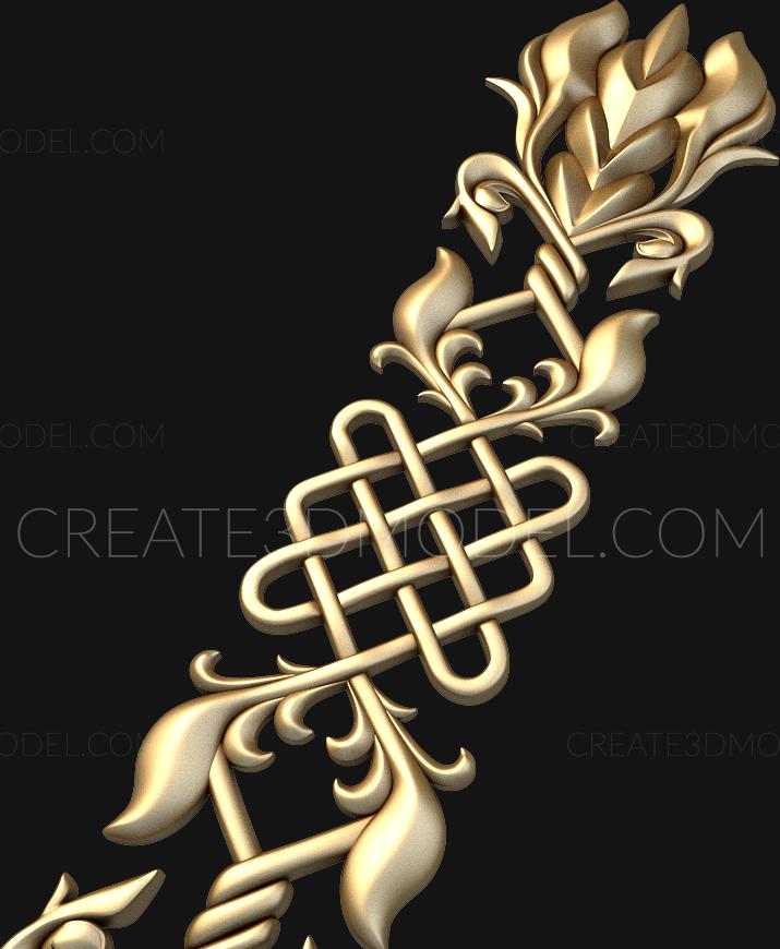 Vertical ornament with interlacing and floristics